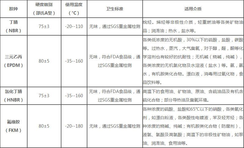 板式換熱器常用密封墊片性能表