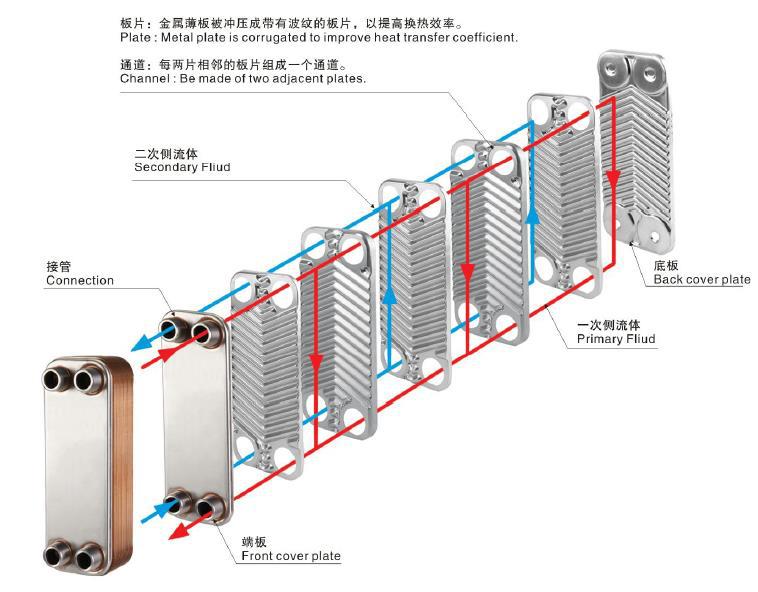 * 釬焊式板式熱交換器換熱效率高,使其在同一冷卻工況下只需要相當于管殼式熱交換器1/3的冷卻水流量。