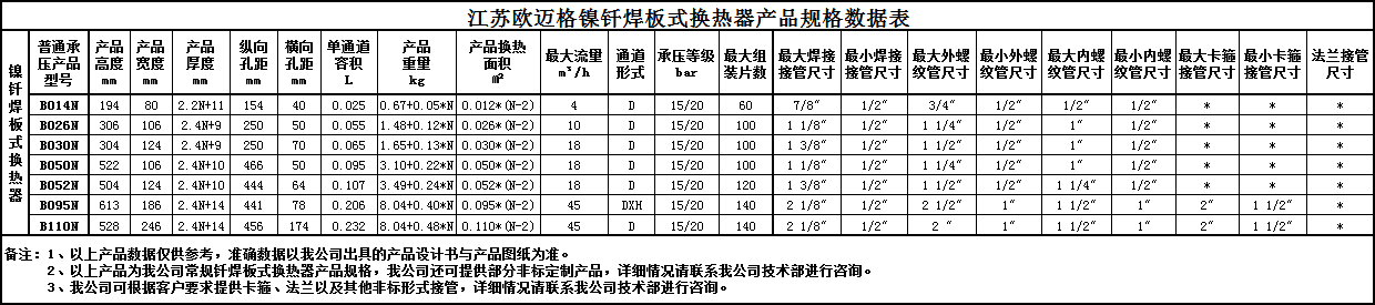 江蘇歐邁格鎳釬焊板式換熱器產品規(guī)格數(shù)據(jù)表